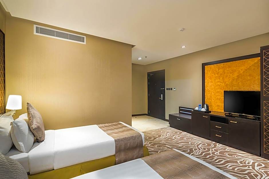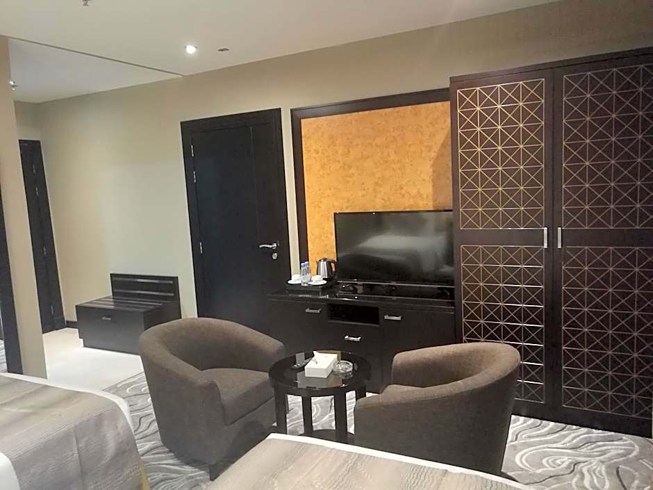 This suite includes 1 living room, 1 separate bedroom and 2 bathrooms with a walk-in shower and free toiletries. The air-conditioned suite offers a flat-screen TV with satellite channels, soundproof walls, a tea and coffee maker, a seating area as well as city views. The unit has 1 bed.